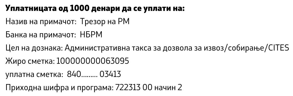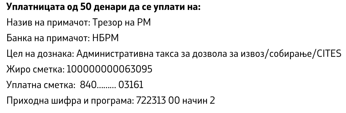APPLICATION for issuing a permit for the collection of affected and protected wild species of plants, fungi and animals and their parts